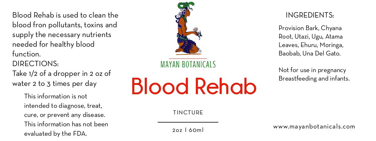 - The unique blend of roots, vines, and barks used in the Blood Rehab Tincture has been trusted by the Mayans for centuries to purify the blood. It helps remove accumulated toxins and pollutants that could be affecting your organs and overall health.